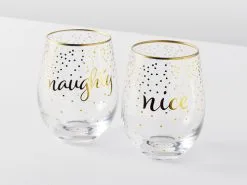 Celebrations Stemless Glass 500ML Set Of 2 Naughty Nice Gift Boxed