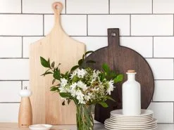 - Made from beautiful rubberwood with a white handle for a clean, natural feel