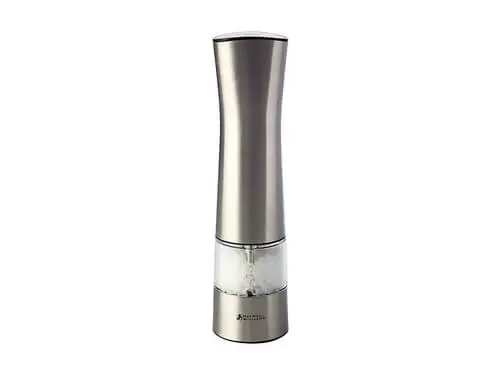 Experience the next generation of kitchen appliances with our Cosmopolitan electric salt and pepper grinders. Made from stainless steel, Cosmopolitan grinders have a modern look and a smooth, cylindrical profile. The motorised ceramic grinding mechanism lets you control your seasonings with the push of a button, with a clear chamber so you can always see how much you’ve got left.