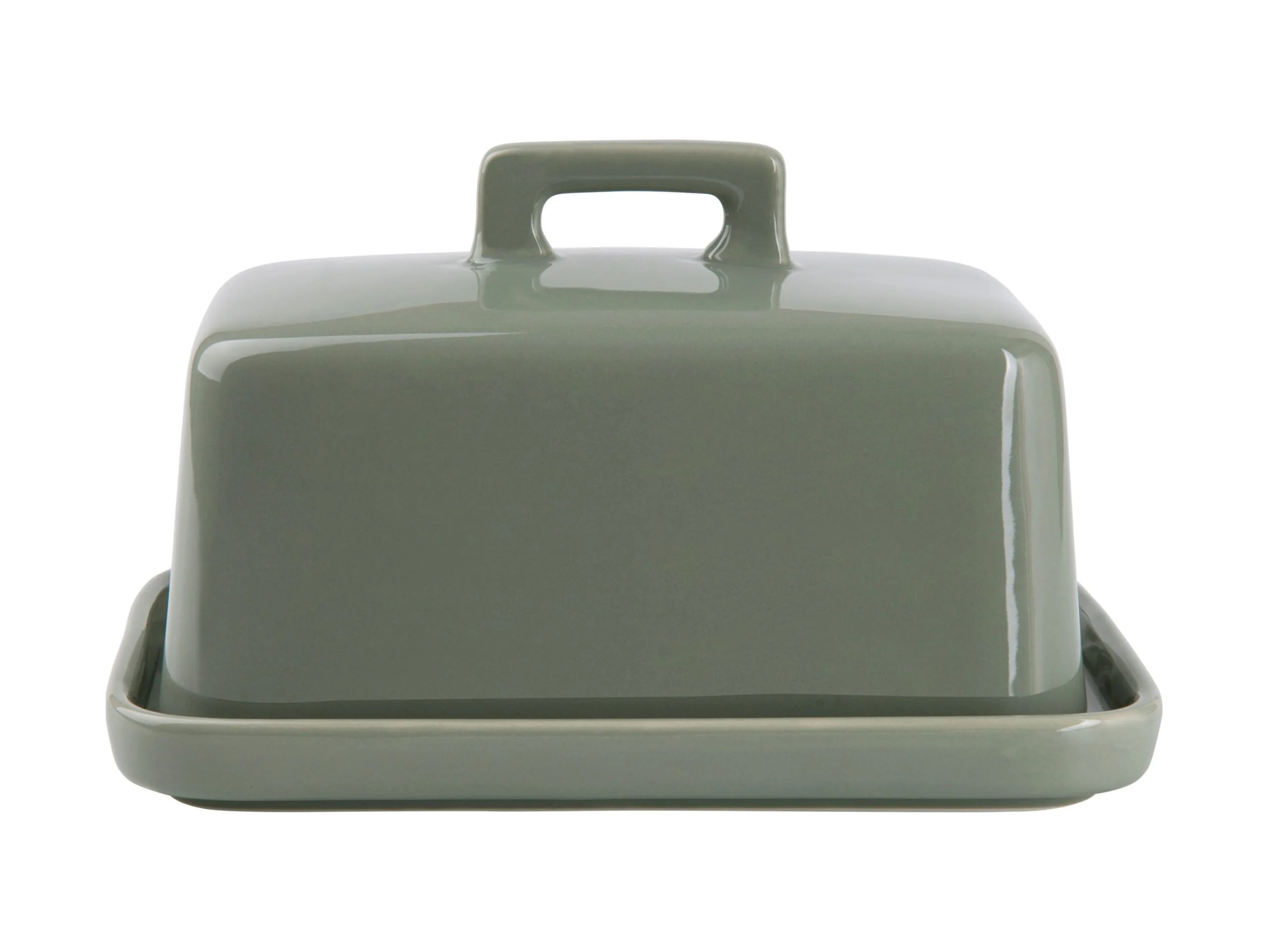 This Epicurious butter dish brings fresh style to the kitchen, with a contemporary design and a soft sage finish. Made from quality porcelain, it includes a matching dish and cover to keep your butter protected while making sure it stays soft and spreadable. A must-have for any home chef, this elegant butter dish coordinates beautifully with the rest of the Epicurious collection.