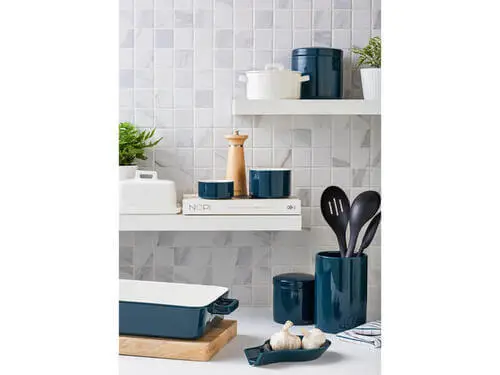 Functionality meets style in our range of Epicurious kitchenware. Created to complement our existing Epicurious bakeware collection, the range includes salt pigs, utensil holders and storage canisters. Designed to keep your bench and tabletop clean and tidy this spoon rest has a slightly concaved bowl for your serving spoons and cooking utensils.
