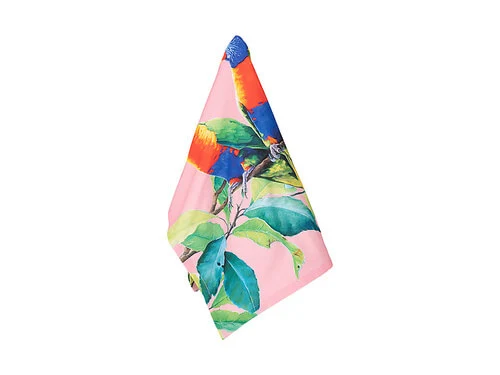 This Rainbow Lorikeets tea towel from the Bird Talk collection celebrates the beauty of our iconic native birds. Created in collaboration with artist Katherine Castle, it features an original design with her signature rich colours and fine details. Made from absorbent cotton, it will bring a touch of Australian style and colour to your kitchen. Highly collectible, the unique tea towel also coordinates beautifully with the rest of the Bird Talk range.