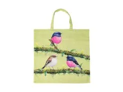 This Pink Robins tote bag from the Bird Talk collection celebrates the beauty of our iconic native birds. Created in collaboration with artist Katherine Castle, it features an original design with her signature rich colours and fine details. Stylish and functional, this handy tote is an accessory with true Australian flavour. Made from 100% cotton, itβs lightweight, practical and the ideal size to use every day, zipping up into a compact shape when not in use.