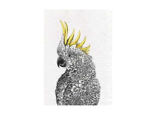 - Features a highly detailed cockatoo illustration decorated with native foliage