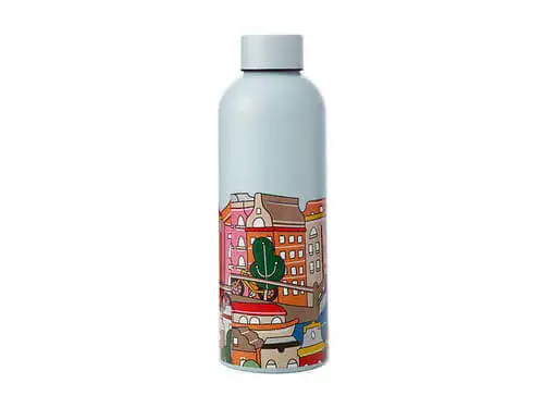 Capturing the famous sights and iconic skylines of some of your favourite cities, artist Megan McKean draws inspiration from both local and international travel. Her collection features a bold use of colour and distinctive modernist style capturing each city’s character for you to enjoy at home. This drink bottle depicts iconic landmarks of Amsterdam such as canal bridges and bicycles.