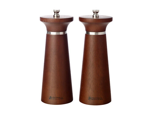 - Ceramic (salt) and carbon steel (pepper) grinding mechanisms
