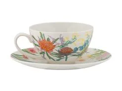 This breakfast cup & saucer set from the Native Blooms collection captures the beauty of Australian flora. Designed in collaboration with Royal Botanic Gardens Victoria, it features an original design of our beloved native flowers. This beautiful set includes a 400ml teacup and matching saucer, perfect for your favourite tea or coffee moment. Made from quality porcelain, itβs contemporary teaware with a uniquely Australian feel.