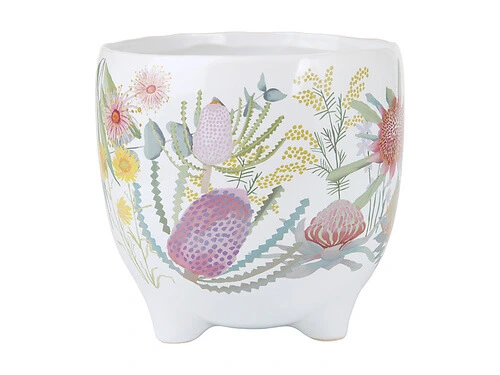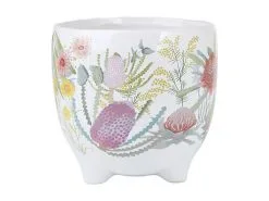 This 16cm plant pot from the Native Blooms collection captures the beauty of Australian flora. Designed in collaboration with Royal Botanic Gardens Victoria, it features a design based on original illustrations of our beloved native flowers. Made from durable stoneware, this gorgeous plant pot has a stylish rounded shape and a footed base. A happy home for your favourite plant, itβs perfect to use either indoors or outdoors.