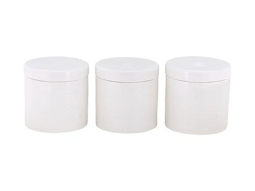 This set of three White Basics Diamonds 600ml canisters is stylish storage made easy. Made from classic white porcelain, these cylindrical canisters feature an elegant diamond-textured surface. With a 600ml capacity and matching lids, they’re the perfect way to store your kitchen essentials. Beautifully packaged, these canisters make a thoughtful gift.