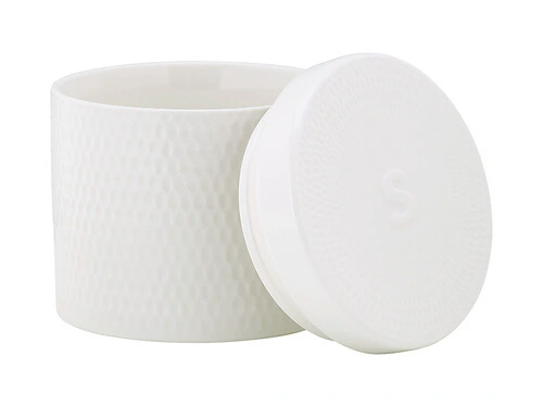 - Cylindrical shape with matching lid and elegant Diamonds textured surface